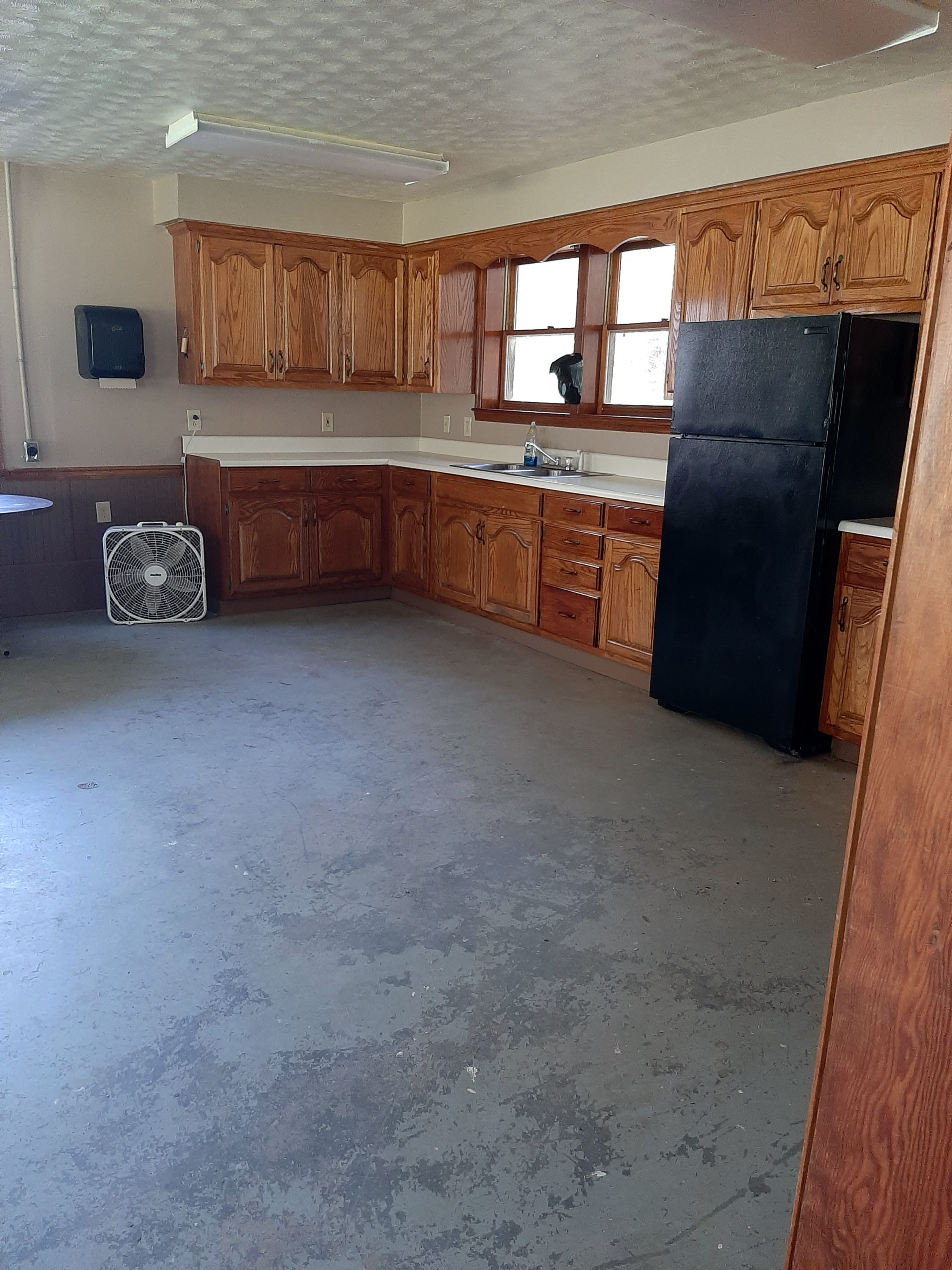 There is no kitchen to use to prepare your own meals. But we do have a regular sized fridge with freezer in pavilion 4 and we have several charcoal grills and campfire rings.