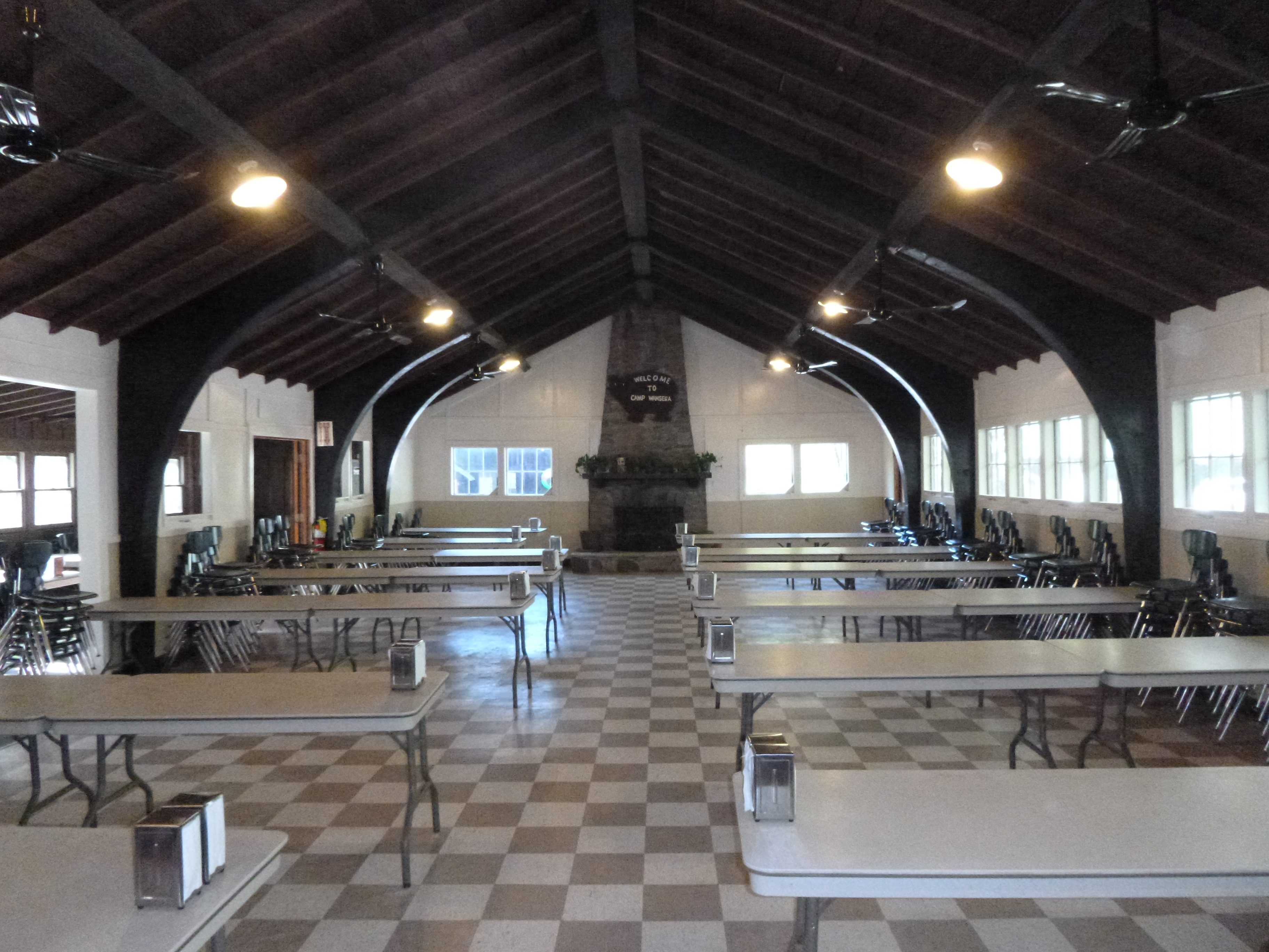 Our beautiful historic cabins can accommodate up to 200 people. Two cabins have their own bathrooms, while the other 14 cabins are served by boy’s and girl’s bath houses. You will need to bring your own bedding (sheets and blankets or a sleeping bag), pillow, towels, and soap. We provide housing only. No linen services are provided.  We have plenty of pristine outdoor space, hiking trails, a large field and fire rings onsite for your group to use.  Two indoor classrooms and a large recreation hall are also available for your group.